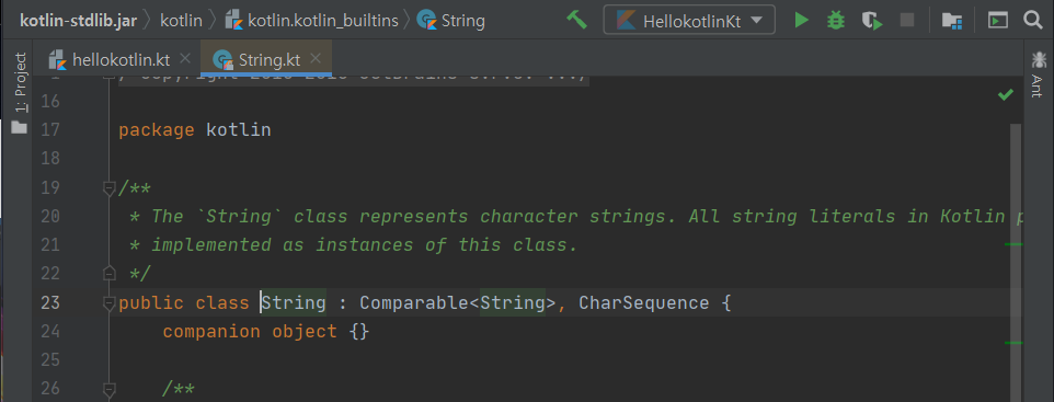 String에 커서를 두고 ctrl+b를 누르면 String.kt 파일이 열린다.